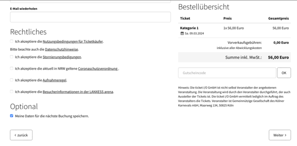 In einer Bestellung können bis zu 100 Tickets ausgewählt werden.